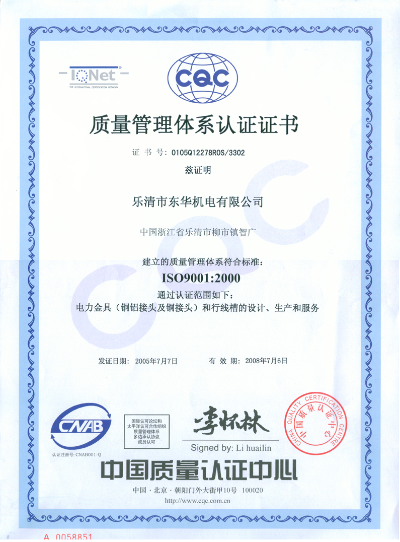 樂清市東華機(jī)電有限公司,技術(shù)力量雄厚,生產(chǎn)設(shè)備先進(jìn),本廠榮獲ISO9001國際質(zhì)量體系認(rèn)證和有關(guān)檢驗(yàn)部門的認(rèn)可,本廠生產(chǎn)系列銅、銅鋁、鋁類電力金具,規(guī)格齊全。